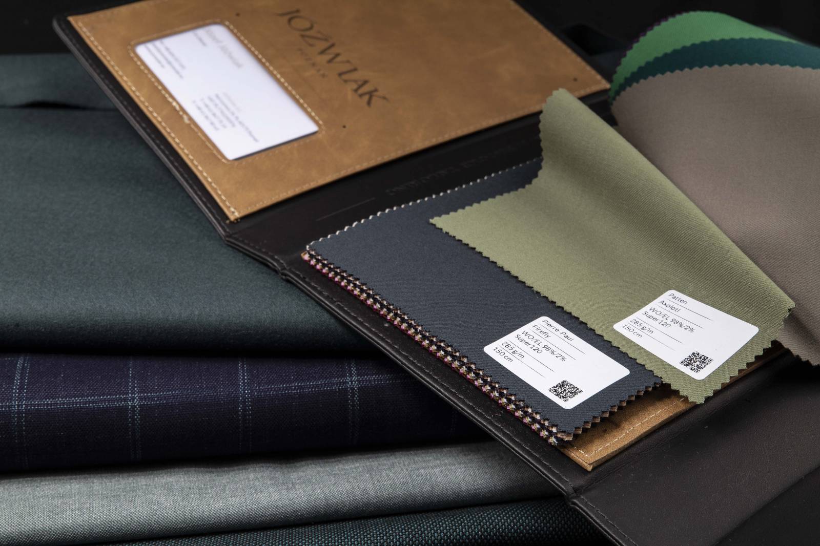 Sélection de tissus nobles : lainages italiens et polonais, tissus techniques haut de gamme Jozwiak